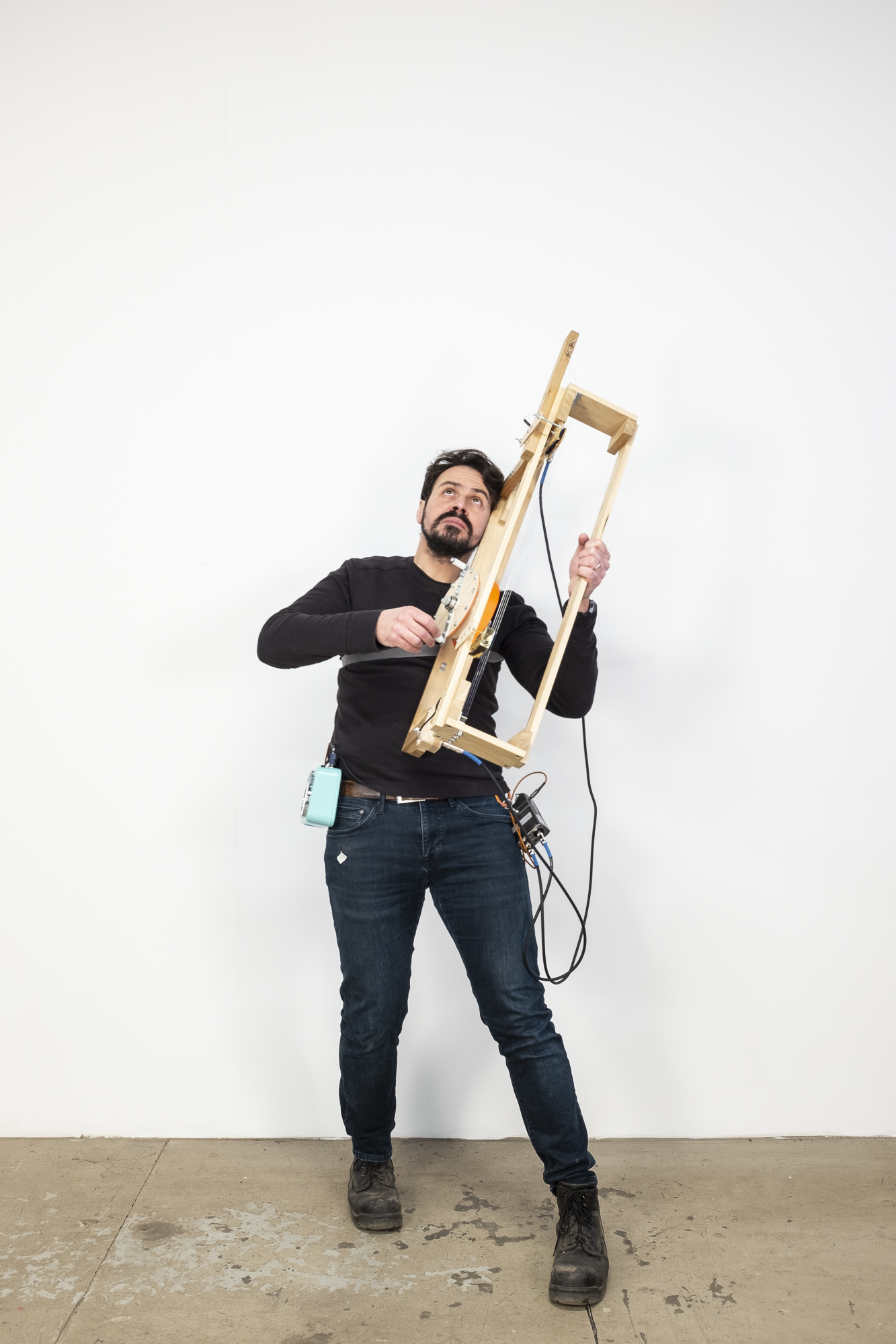 Rosined fishing line, modified fishing reel, guitar string or music wire, wood frames, made and found soundboxes +/- piezoelectric or electromagnetic pickups, and mini-amps. 2018-2020.